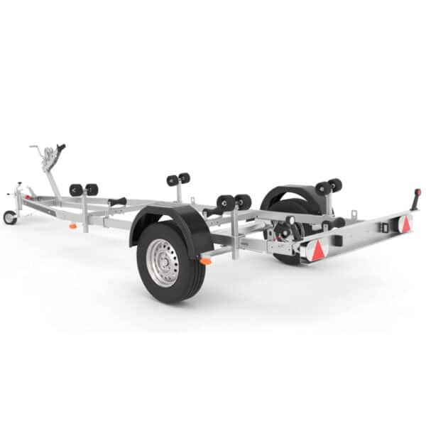 Bootsanhänger aus verstärkten Profilen. Achsen mit wasserdichten Lagern in den Naben für zuverlässiges Starten. Durch Feuerverzinkung geschützte Anhänger für Langlebigkeit und ein unverändertes Aussehen. Der bewegliche Heckträger ist nicht nur leicht abnehmbar, sondern dient auch dazu, die Länge des Anhängers zu verstellen, so dass bei Bedarf auch ein größeres Boot darauf Platz findet. Stufenlos verstellbare Stützen, verstellbare Achsposition zur Einstellung der richtigen Last auf der Anhängerkupplung. Maximal abgesenkte Ladung und robuste Bootshalterungen sorgen für Sicherheit und Komfort beim Transport Ihres Bootes.