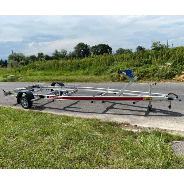 Boottransportanhänger aus Aluminium. Die leichtere Konstruktion ermöglicht die Beförderung von schweren Lasten und behält die gleiche Robustheit. Die beweglichen Rollen, einstellbare Lichtrampe und die einfach bedienbare Seilwinde Vorne sorgen für ein problemsloses Be- und Entladen eures Bootes.