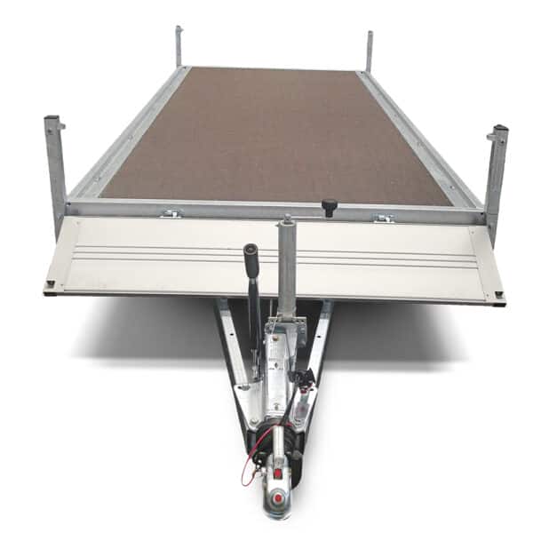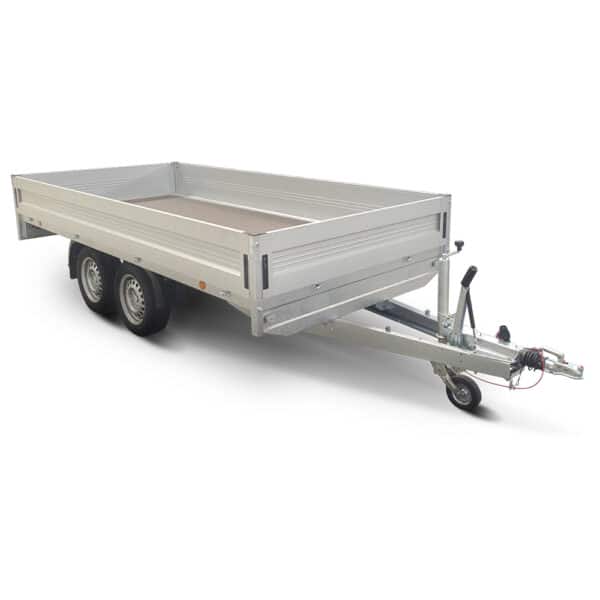 Optimaler Anhänger für Handwerk und Gewerbe – Die Räder unter der Ladefläche und die abklappbare Seitenwände vereinfachen das Be- und Entladen. Die eloxierten Seitenwandprofile verleihen dem Anhänger ein elegantes Aussehen. Die Eckpfosten sind aussteckbar und ermöglichen somit eine Umwandlung des Anhängers zum Plateau. Kleinere Rädern können montiert werden um die Ladehöhe zu senken. Robuste Planenaufbaten können optional hingefügt werden um die Ladung zu schützen. Technisch ausgereift für eine lange Lebensdauer!