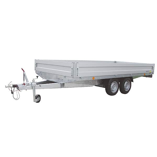 Optimaler Anhänger für Handwerk und Gewerbe – Die Räder unter der Ladefläche und die abklappbare Seitenwände vereinfachen das Be- und Entladen. Die eloxierten Seitenwandprofile verleihen dem Anhänger ein elegantes Aussehen. Die Eckpfosten sind aussteckbar und ermöglichen somit eine Umwandlung des Anhängers zum Plateau. Kleinere Rädern können montiert werden um die Ladehöhe zu senken. Robuste Planenaufbaten können optional hingefügt werden um die Ladung zu schützen. Technisch ausgereift für eine lange Lebensdauer!