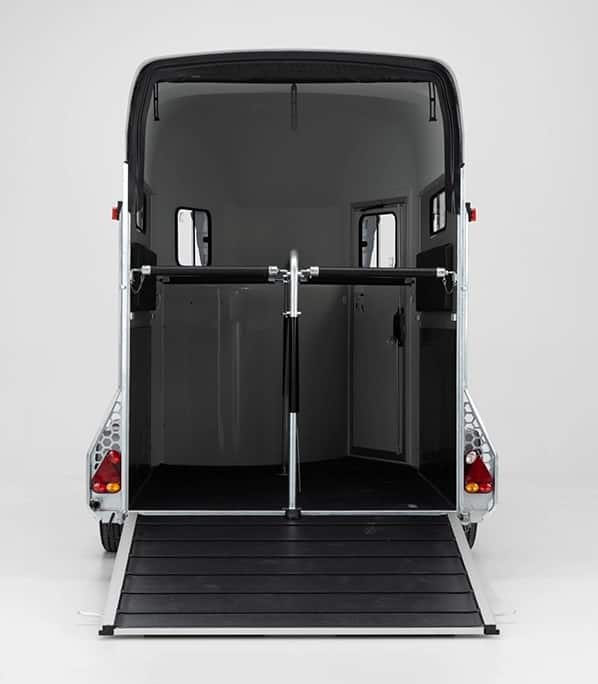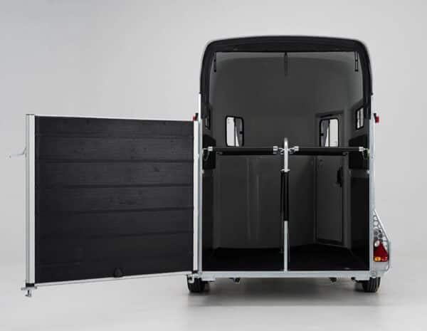 • Anbinderinge außen mit Antipanik-Entriegelung für vordere Boxenstangen
