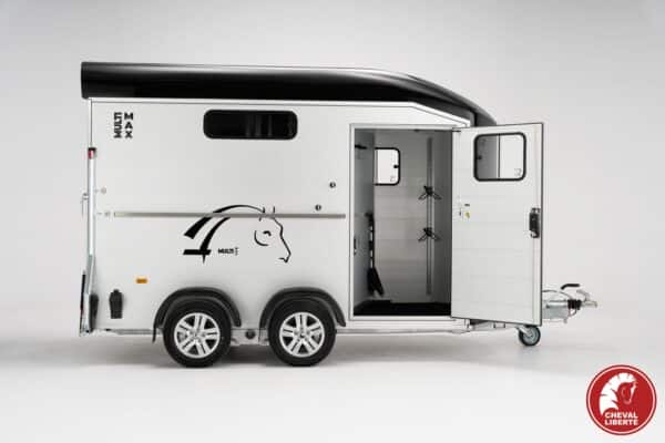 Modernes und aerodynamisches Design für viel Innenraum – Grosse Salltelkammer für alle Arten Sättel optional verfügbar! Ausgestattet um Komfort, Sicherheit und Bel uftung zu garantieren. Der Boden und die Seitenwände sind aus Aluminium mit einer 5 – Jahresgarantie. Viel Komfort für den Reiter und das Tier dank der Einzelradaufhängung Pullman 2: Veringert die Einstiegshöhe, sorgt für eine stabile Fahrt und wirkt Geräuschdämfend.