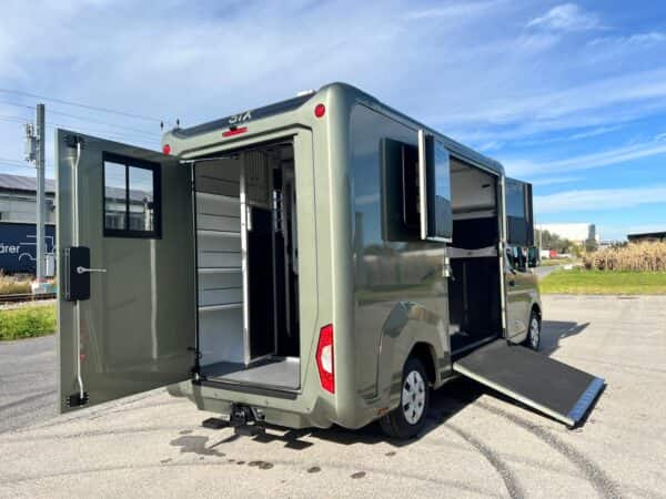 • Integrierte Sattelkammer mit Haltern für Sattel und Zaumzeug