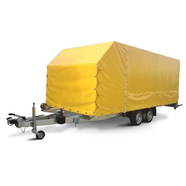 Praktischer Universal-Anhänger für den Transport von etwas grösseren Ladungen. Enthält eine mechanisch abkippbare Ladefläche und zwei Auffahrschienen. Erhältlich in 2 oder 3 Achsen. Ausgestattet mit einer Plane für einen optimalen Schutz. Er kann als Abschleppwagen dienen oder als Transport von Bau- und Landmaschinen.