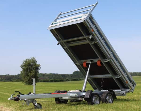 Hochwertiger Rückwärtskipper zum transportieren von Schuttgut alle Art. Die elektrische Pumpe ermöglicht eine praktische Nützung im Alltag. Robuste Bauweise garantiert eine lange Lebensdauer. Die Eckpfosten und Seitenwände sind abnehmbar um den Anhänger in eine Plattform zu verwandeln. Damit Arbeiten Freude macht!