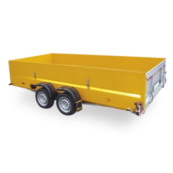 Fahrwerk: Grundrahmen feuerverzinkt, verschweisst und verschraubt, V-Anhängevorrichtung feuerverzinkt, Kugelkupplung mit Abreissleine, Kotschutz aus Kunststoff Stützrad vorne automatisch Anheben: manuelle Hydraulikpumpe Achsen: Knott – PEVA DALTEC, hydraulisch absenkbar mit mechanische Entriegelung & automatische Verriegelung in Fahrtposition Handbremse Rückfahrautomatik Ladefläche: Rahmen feuerverzinkt, Boden aus Siebdruckplatte 18 mm, Borwände aus Aluprofil 50 mm, gelb oder grau Heckrampe überfahrbar, mechanisch verriegelt 6 Stk Binderinge Beleuchtungsanlage: 12V, nach Normen der StVO, 13 Pol-Stecker