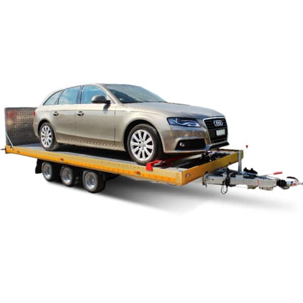 Leichter, robuster Anhänger für den professionellen Autotransport. Hohe Nutzlast durch den grossen Aluminiumanteil. Grosse abkippbare Ladefläche für einen niedrigen Ladewinkel und somit einen höheren Ladekomfort. Die Ladefläche ist manuel absenkbar und der Auffahrtswinkel beträgt nur 10° für eine problemlose Aufladung von auch tieferen Autos.
