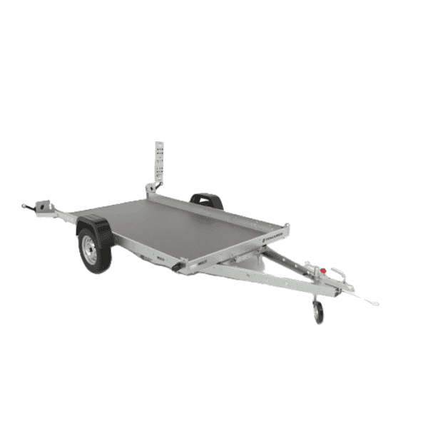 Universeller Transportanhänger mit kippbarer Deichsel für den Transport von Motorrädern, Quads und anderen Kleinfahrzeugen. Der Trailer ist wesentlich breiter als die Trailer der Moto-Serie. Untergestell aus verzinkten, gebogenen und miteinander verschraubten Stahlprofilen. Der Boden besteht aus wasserfestem, rutschfestem Sperrholz. Es ist möglich, Seitenbretter hinzuzufügen, was die Transportkapazität erhöht, und das Überbrett erleichtert den Einstieg in den Anhänger. Die Möglichkeit, einen Kurbelaufzug zu montieren, so dass der Anhänger in der gekippten Position bleibt, wenn das erste Teil geladen wird.