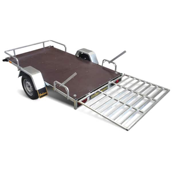 Ungebremster Freizeitanhänger – Der Quad 1 ist einer der beliebtester Daltec-Anhänger. Das Verladen geht ganz einfach dank der verzinkten Verladerampe und der abkippbaren Ladefläche. Die grossen Seitenräder sorgen für ein stabiles Fahrverhalten. Damit können Sie Ihr Quad sicher transportieren!