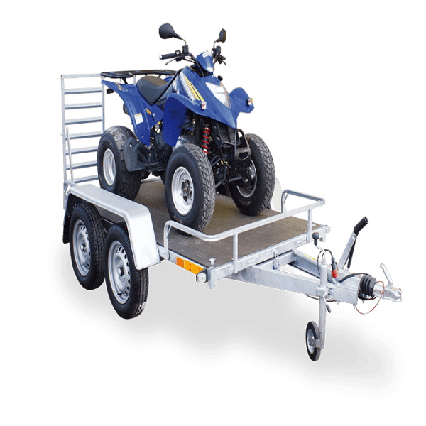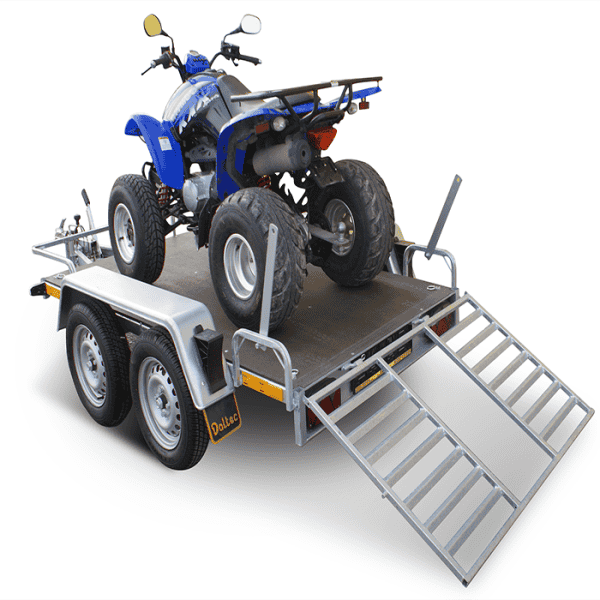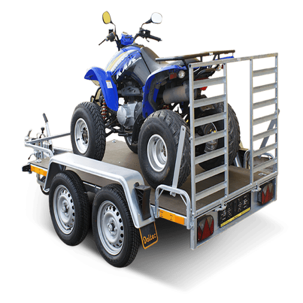 Ungebremster Freizeitanhänger – Der Quad 1 ist einer der beliebtester Daltec-Anhänger. Das Verladen geht ganz einfach dank der verzinkten Verladerampe und der abkippbaren Ladefläche. Die grossen Seitenräder sorgen für ein stabiles Fahrverhalten. Damit können Sie Ihr Quad sicher transportieren!