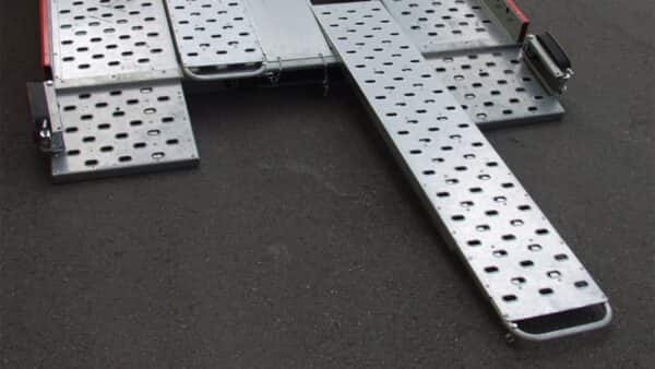 Während Sie bei herkömmlichen Autotransportern mit Auffahrrampen verladen, sind diese beim ATOUR Grande überflüssig. Seine verzinkte Ladefläche ist gleichzeitig eine stufenlos mechanisch kippbare Brücke. Ist er in schräger Auffahrposition kann das Fahrzeug direkt auffahren oder heraufgezogen werden.