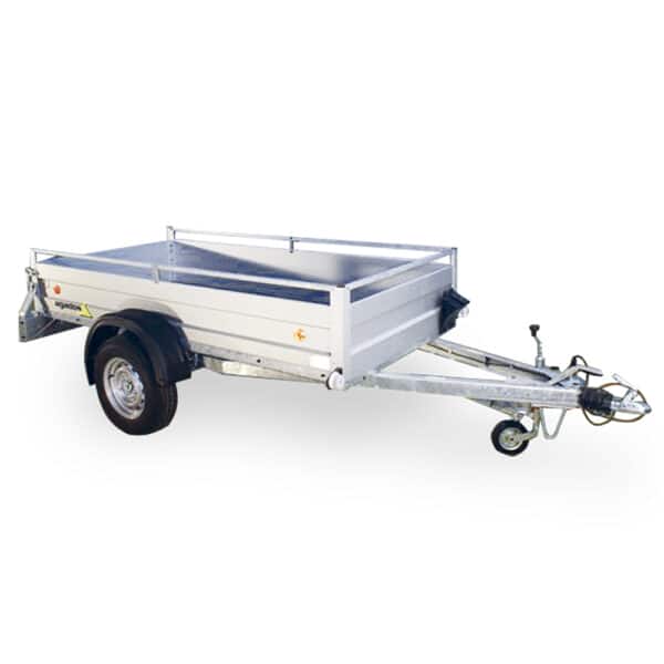 Einachsiger, robuster Arbeitstransportsanhänger – Mit verzinktem Fahrgestell und Alu-Seitenwände mit Reling. Stabile und leichtzügige Fahrt dank dem tiefen Schwerpunkt und der grossen Räder. Diverse Optionen wie z.b eine Bordwanderhöhung stehen zur Verfügung.