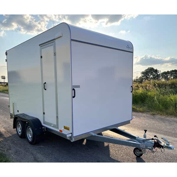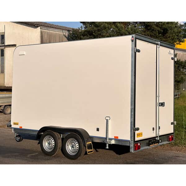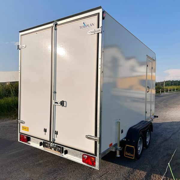 Tieflader Kofferanhänger mit Doppelflügeltüren und Servicetüre