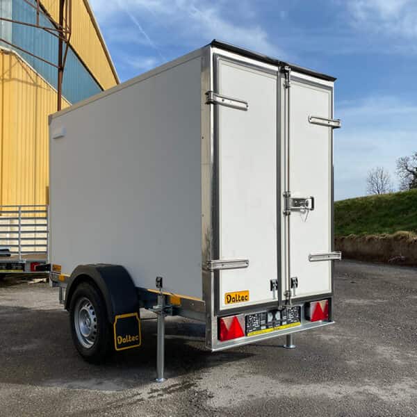 Kleiner gebremster Kofferanhänger mit Plywoodaufbau – Hohe Qualität und gute Isolierungseigenschaften durch moderne Fabrikationsmethoden. Die seitlichen Räder sorgen für eine ruhige Fahrt. Der Innenausbau ist aus diverse Materialien gemacht um Schlagschutz und Isolation zu garantieren. Verschieden Aufbaumöglichkeiten ermöglichen ihnen den Anhänger nach ihre Bedürfnisse zu gestalten. Transportieren Sie ihre Waren ohne sich um die Sicherheit oder ungünstige Wetterbedingungen zu sorgen!