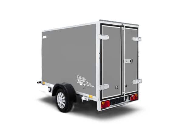 Tieflader Kofferanhänger mit Doppelflügeltüren und Servicetüre