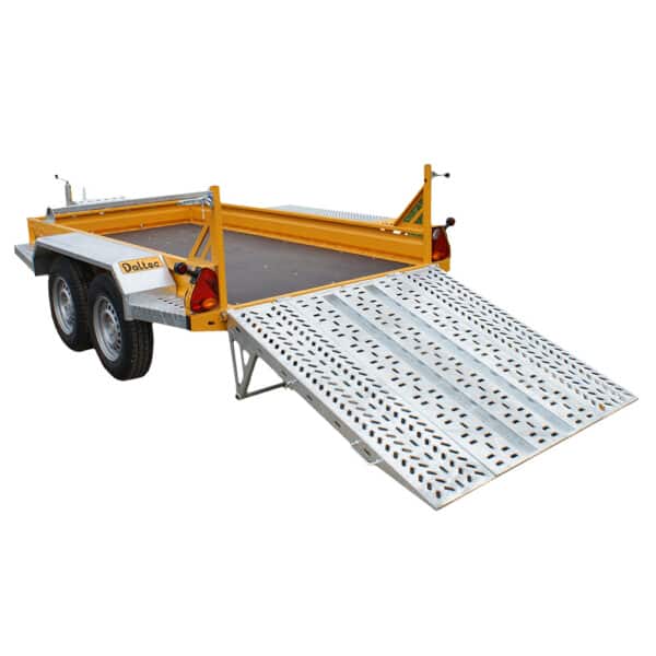 Dieser Anhänger bietet eine sichere Fahrt für alle Arten von Baumaschinen und Baumaterial. Die verstärkten Achsen ermöglichen eine grössere Nutzlast und die durchgehende Gitter-Laderampe sorgt für ein einfaches und schnelles verladen.