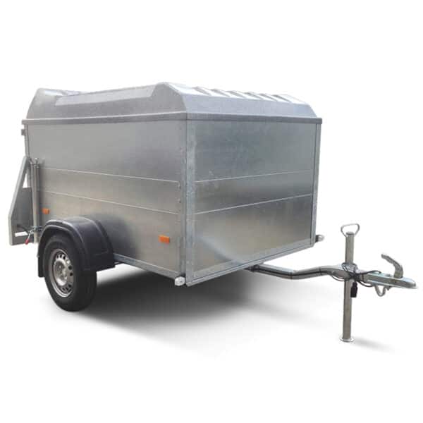 Fahrgestell selbsttragend: Grundrahmen feuerverzinkt, verschweisst und verschraubt Rohrdeichsel mit Kugelkopf Sicherungskette Kotschutz aus Kunststoff Stützfuss vorne Achse: Knott ungebremst Aufbau: Kasten aus Blech verzinkt 1000 mm hoch Kunststoffdeckel aufklappbar, abschliessbar 2 fixe, verzinkte Schienen für obere Etage Doppelflügeltüre Stützen hinten verstellbar Boden aus Siebdruckplatte 15 mm Beleuchtungsanlage: Nach Normen der StV0 12V, 13 Pol-Stecker