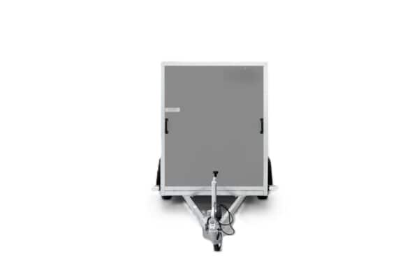 Dimensions extérieures (longueur x largeur x hauteur) : 4576 x 1978 x 2360 mm. Châssis : cadre de base galvanisé et soudé, timon en V, dispositif à inertie freiné avec boule d'attelage et câble de sécurité, roue jockey à l'avant. Essieu : 1x essieu AL-KO ou KNOTT freiné avec frein à main et système anti-retour. Structure : Parois en bois revêtues, cadre solide galvanisé, portes arrière à double battant avec fermeture à crémone, porte de service à droite avec fermeture à clé, grille d'aération, 2x pieds d'appui arrière avec support. Plancher : plancher en contreplaqué antidérapant. Fixation du chargement : 2 rangées de rails d'arrimage de chaque côté à l'intérieur, 6 anneaux d'arrimage encastrés dans le plancher. Eclairage : 12V, fiche 13 pôles, Selon les normes actuelles.