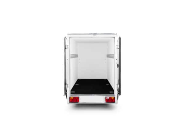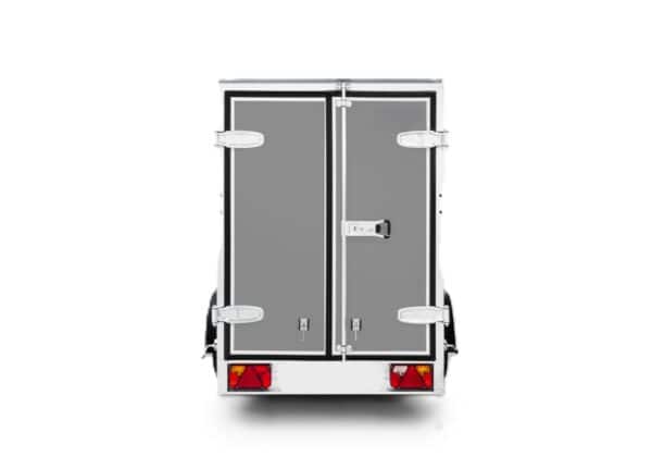 Remorque surbaissée fourgon en bois avec portes arrière à double battant